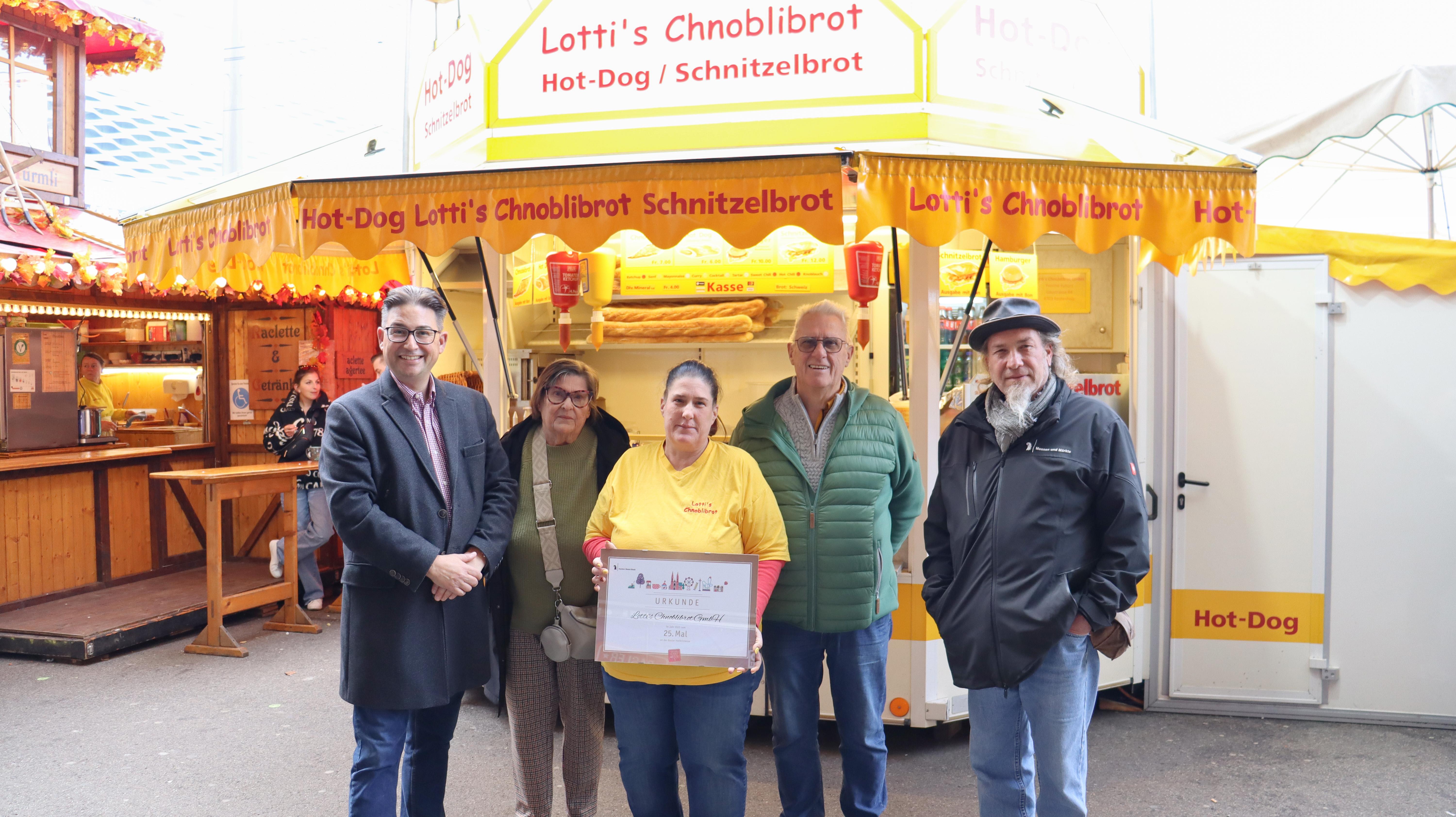 Lotti’s Chnoblibrot GmbH auf dem Messeplatz verwöhnt die Besuchenden mit ihrem berühmten Knoblauchbrot, Hot Dogs, Schnitzelbrot und klassischen Hamburgern.